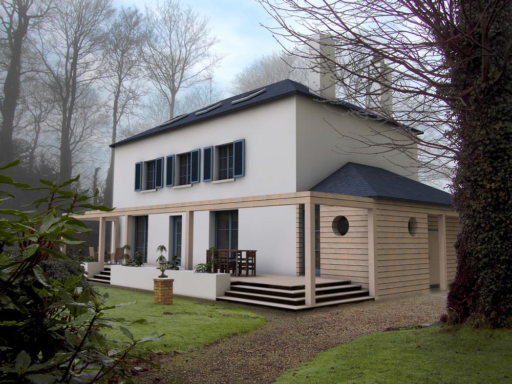 Programme : Réhabilitation thermique d’une maison normande. Extension + création sanitaire au rez-de-chaussée et aménagement des combles.